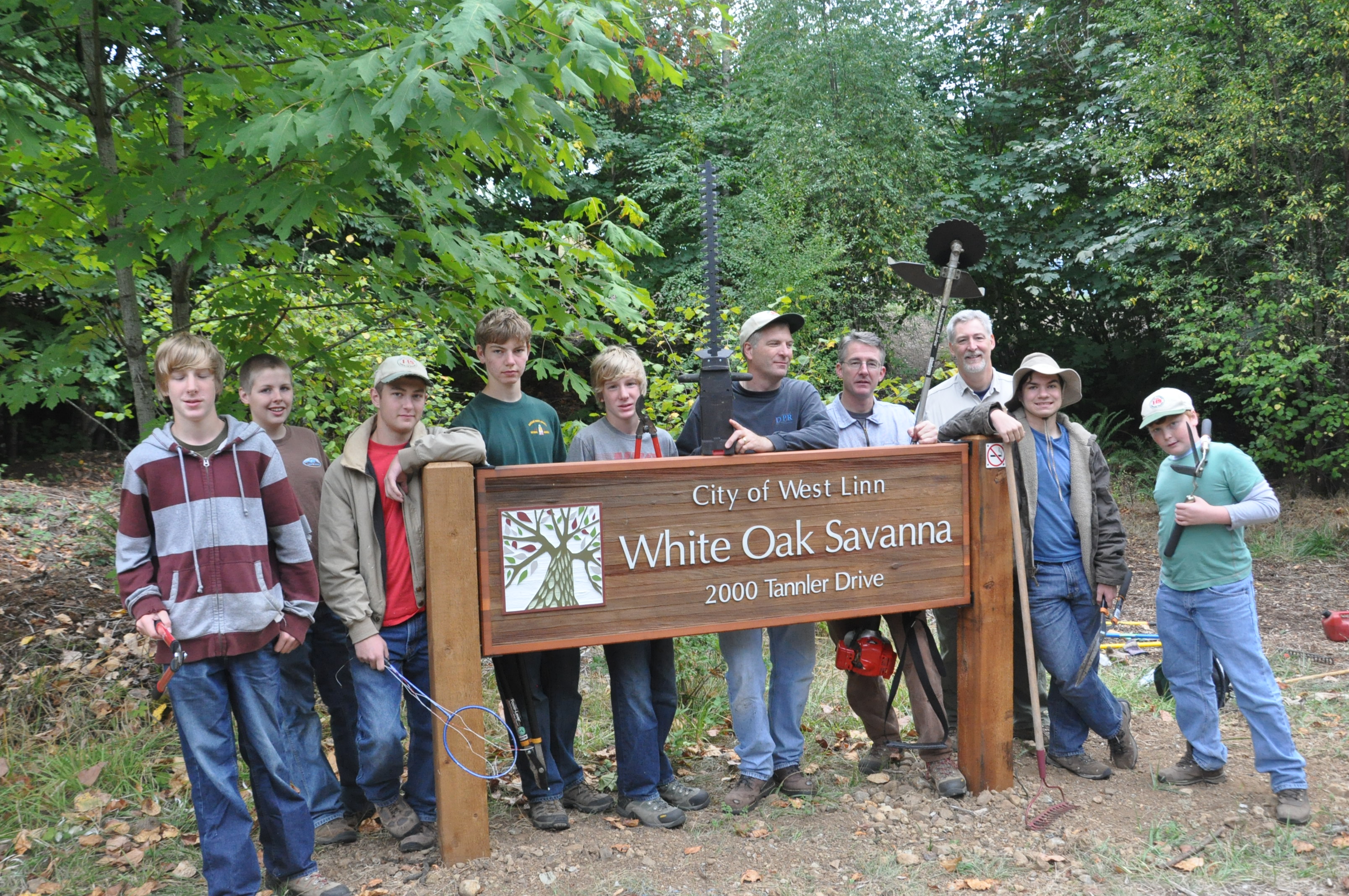 Fourteen Boy Scouts from West Linn Boy Scout Troop 149, along with a few of their dads, logged more than 102 service hours at the White Oak Savanna natural park in West Linn to fulfill the final requirement for a 50-Miler Award they earned at a recent troop Court of Honor.