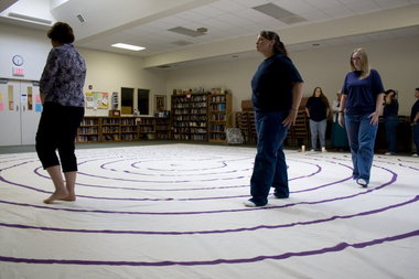 “At the center of the labyrinth you let go of everything and it changes you,” Wood said. “There’s a woman in here that I wouldn’t talk to out there, but in here it’s different. Now we acknowledge each other” outside the labyrinth sessions.